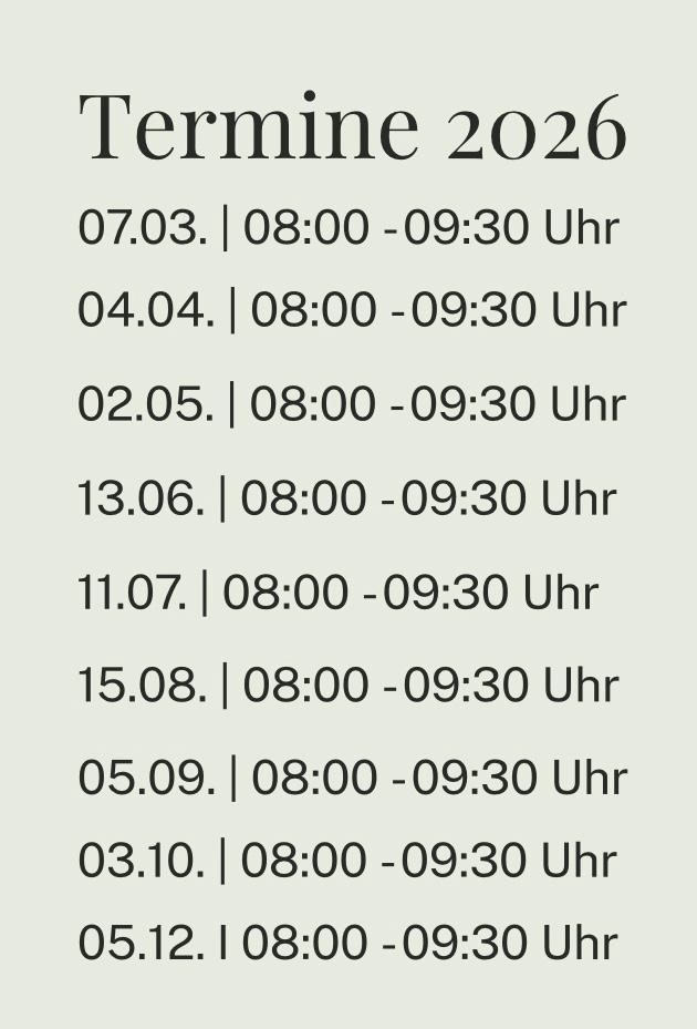 16.05.2026; 20.06.2026; 04.07.2026; 29.08.2026; 12.09.2026; 10./11.10.26; 14.11.2026; 13.12.2026